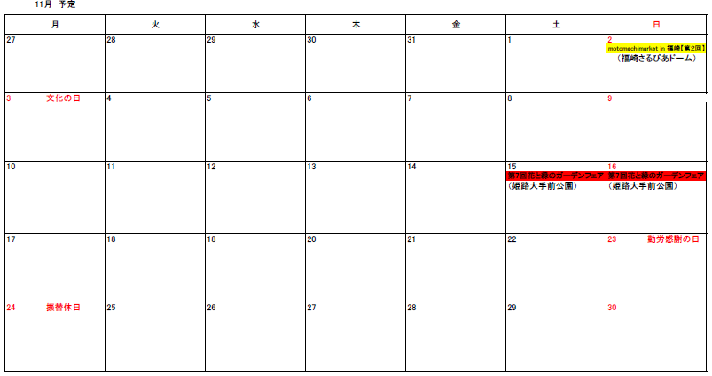 ぞうか屋姫路元町・モトマチマーケット情報 令和7年11月催事予定 ~10/27更新~